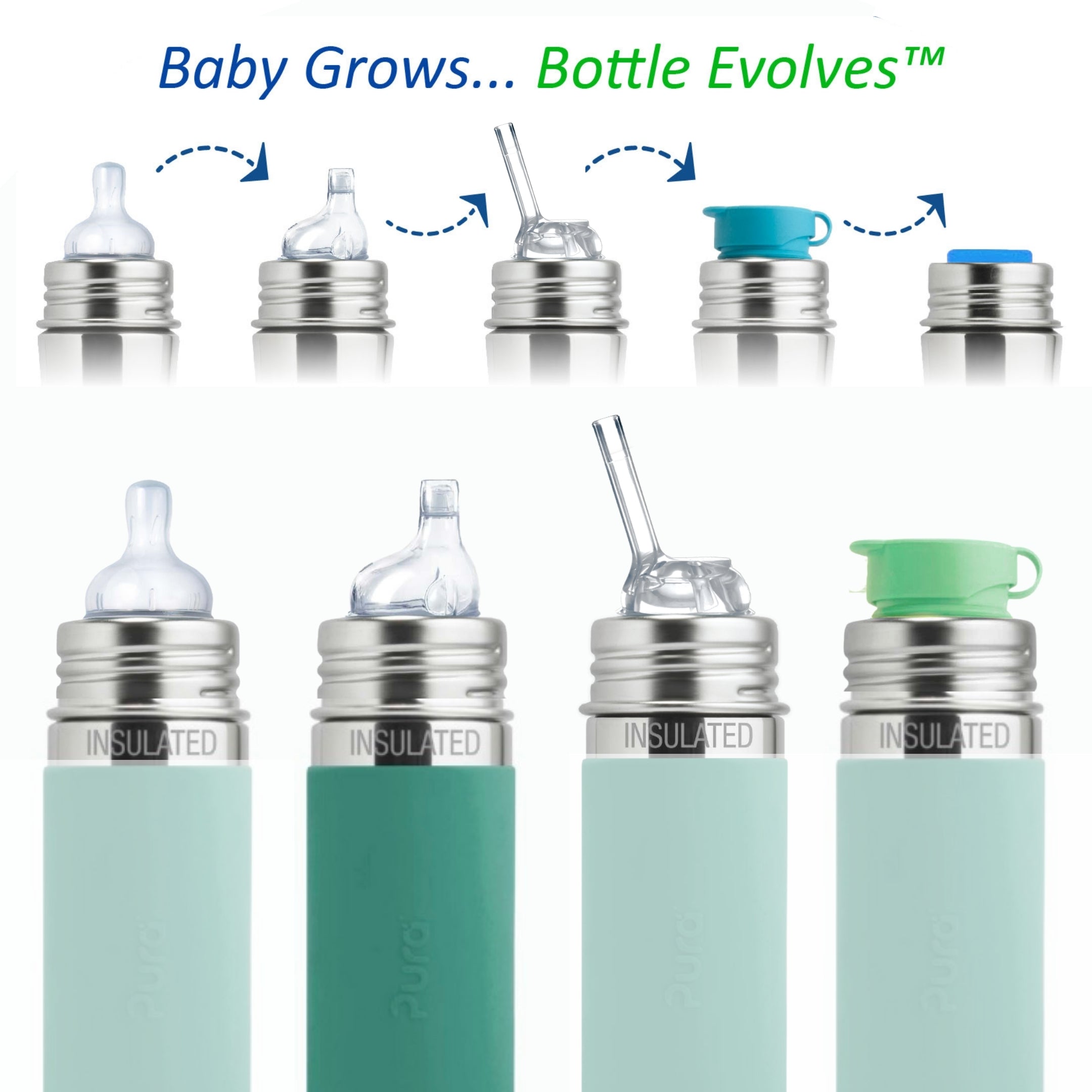 - Alla Pura silikonlock passar till alla Pura flaskor – det här är hållbara flaskor som ”växer” med barnet! Med hjälp av ett utbytbart lock kan flaskan enkelt förvandlas till en napp- eller sugrörflaska, en burk för snacks eller en sportflaska