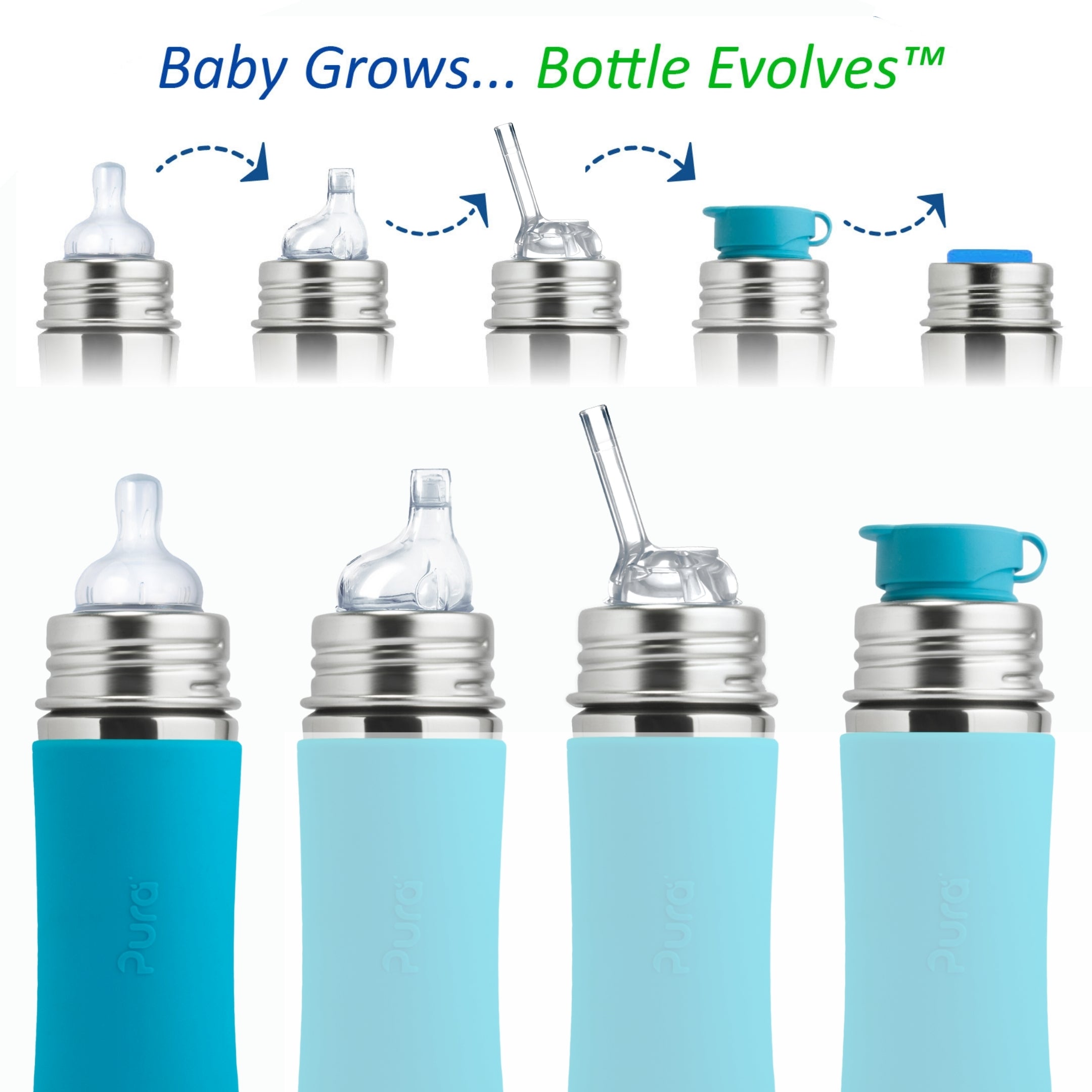 • Alla Pura silikonlock passar till alla Pura flaskor – det här är hållbara flaskor som ”växer” med barnet! Med hjälp av ett utbytbart lock kan flaskan enkelt förvandlas till en pip- eller sugrörflaska, en burk för snacks eller en sportflaska