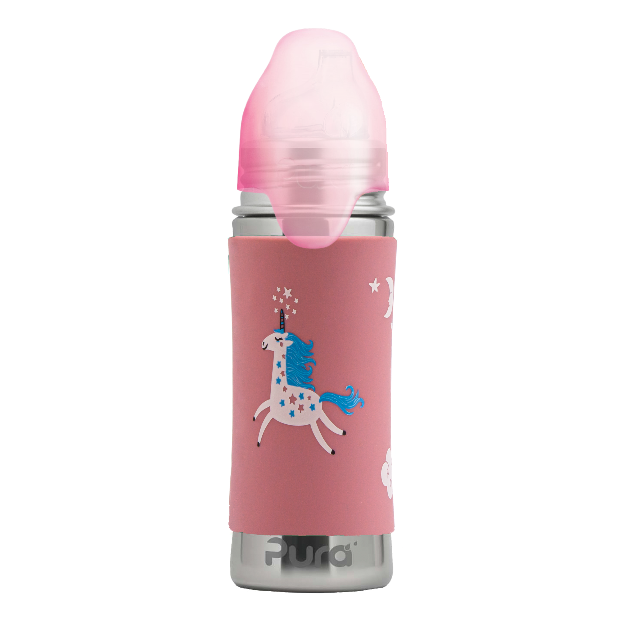 • Alla Pura silikonlock passar till alla Pura flaskor – det här är hållbara flaskor som ”växer” med barnet! Med hjälp av ett utbytbart lock kan flaskan enkelt förvandlas till en napp- eller sugrörflaska, en burk för snacks eller en sportflaska