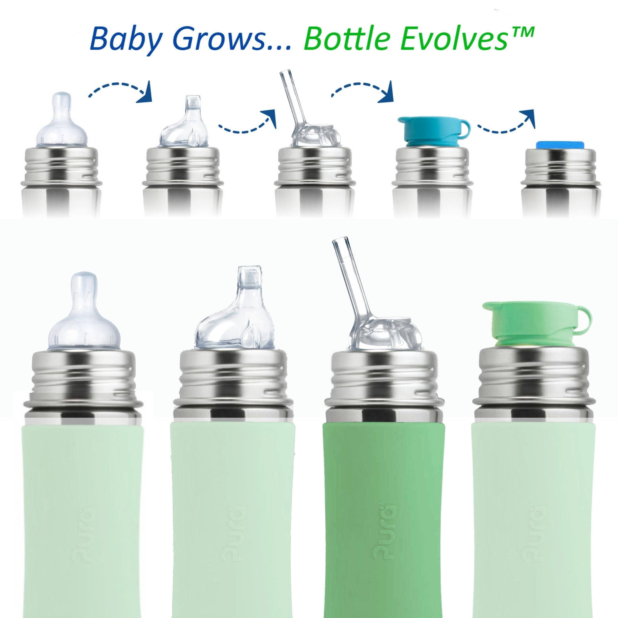 • Alla Pura silikonlock passar till alla Pura flaskor – det här är hållbara flaskor som ”växer” med barnet! Med hjälp av ett utbytbart lock kan flaskan enkelt förvandlas till en nappflaska, en pipmugg, en burk för snacks eller en sportflaska