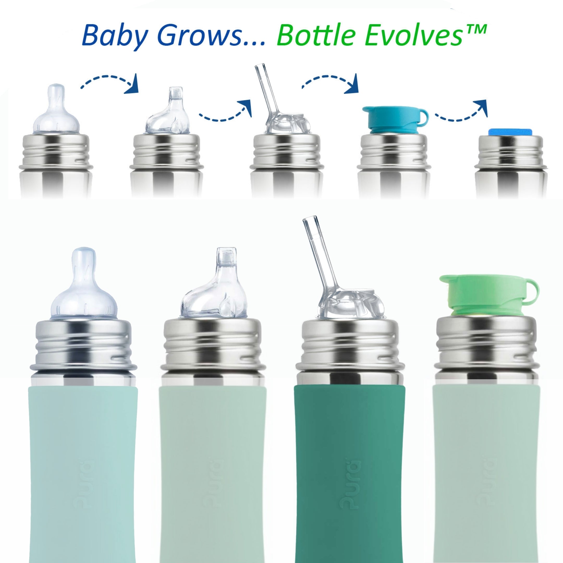 - Alla Pura silikonlock passar till alla Pura flaskor – det här är hållbara flaskor som ”växer” med barnet! Med hjälp av ett utbytbart lock kan flaskan enkelt förvandlas till en nappflaska, en pipmugg, en burk för snacks eller en sportflaska