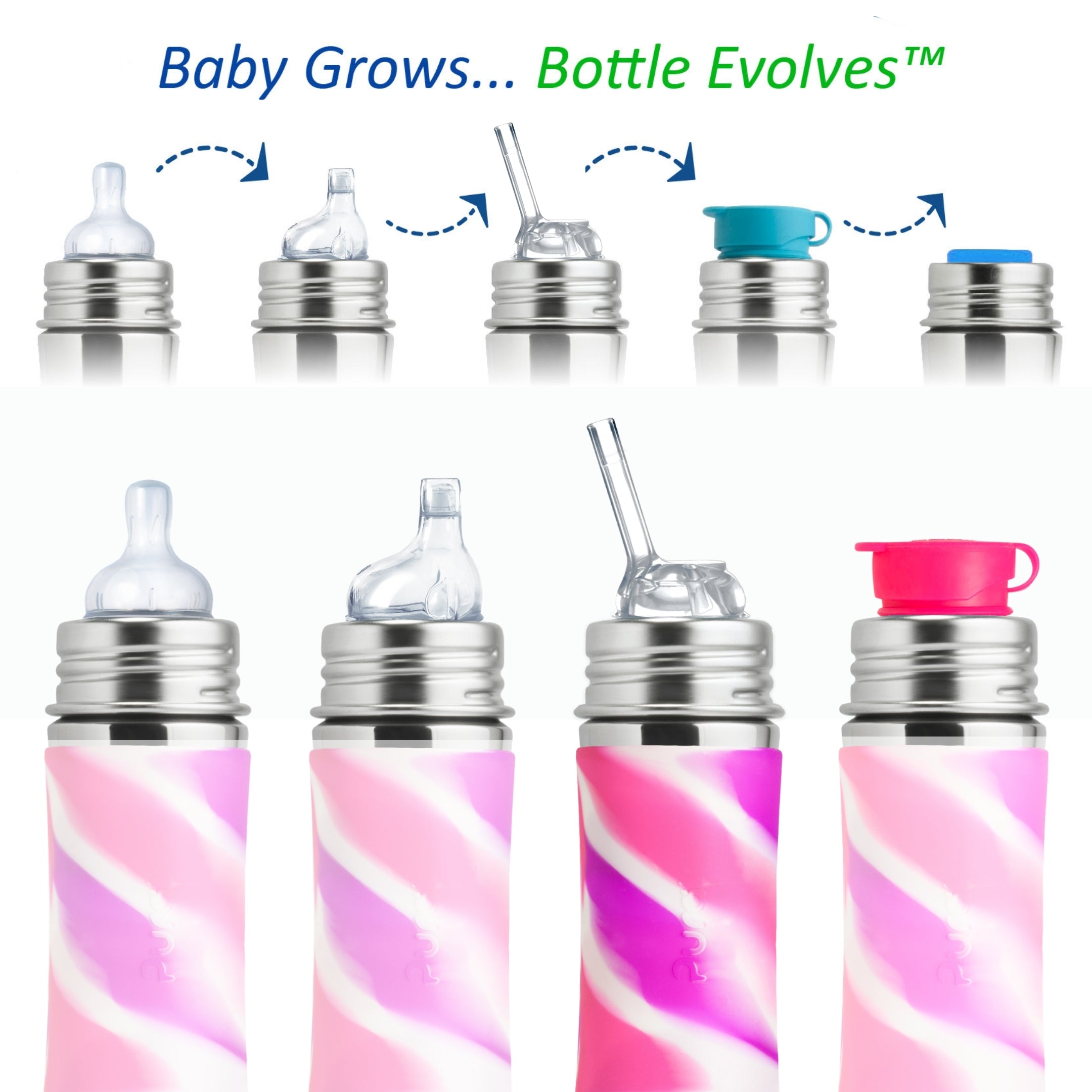 - Alla Pura silikonlock passar till alla Pura flaskor – det här är hållbara flaskor som ”växer” med barnet! Med hjälp av ett utbytbart lock kan flaskan enkelt förvandlas till en nappflaska, en pipmugg, en burk för snacks eller en sportflaska